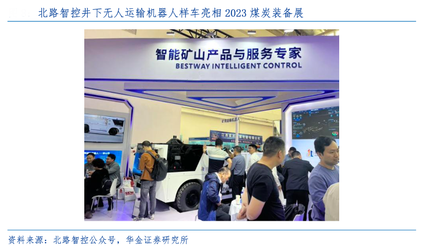 經典案例:根據北路智控公眾號、華金證券研究所等綜合資訊表明,北路智控公司在 2023“第二十屆中國國際煤炭采礦技術交流及設備展覽會”亮相井下無人運輸機器人 “穿山甲”,該款運輸機器人深度融合 5G、數字建模、無線通信、UWB 精準定位、機器視覺、慣性導航等技術,采用全時四驅、雙向行駛的獨特設計和智能操作系統,實現對無衛星導航、空間狹小、防爆要求高、工況復雜條件下的井下環境 360°全方位感知與障礙物識別。為了滿足礦方多 樣化的需求,穿山甲可自由切換遙控駕駛、遠程駕駛、自動駕駛等模式,按照預設的駕駛模式及 路線規劃,安全高效完成運輸任務。