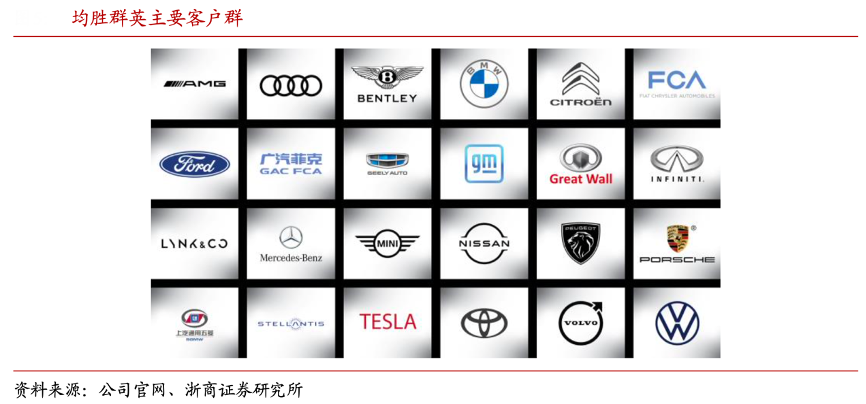 經典案例:根據公司官網、浙商證券研究所等綜合資訊表明,香山股份公司擁有廣泛的客戶群,旗下均勝群英子公司客戶群覆蓋國內外知名汽車廠商。均勝 群英與吉利汽車、上汽通用等國內整車廠商深入合作,并拓展與奔馳、寶馬、奧迪、大眾等全球知名汽車品牌的新能源汽車方面合作規模,客戶數量穩定增長。