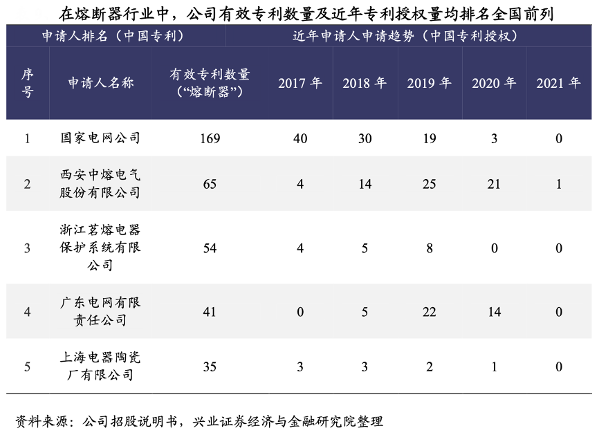 經(jīng)典案例:根據(jù)公司招股說明書、興業(yè)證券經(jīng)濟(jì)與金融研究院等綜合資訊表明,中熔電氣公司 2010 年即被認(rèn)定為“高新技術(shù)企業(yè)”。根據(jù)公司 2022 年度報告,公司及子公司共擁有 199 項國家專利, 包括 3 項發(fā)明專利、192 項實用新型專利、4 項外觀設(shè)計專利,另有多項發(fā)明專利處于申請過程中。其中與熔體結(jié)構(gòu)相關(guān)的有效專利有 52項,熔體是影響熔斷器性能的核心零部件,公司在熔體結(jié)構(gòu)設(shè)計方面能力突出。