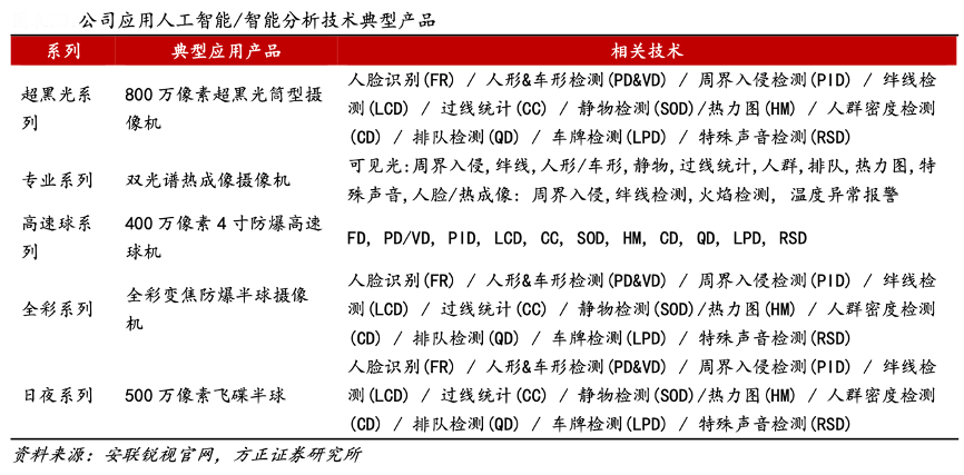 經典案例:根據安聯銳視官網、方正證券研究所等綜合資訊表明,安聯銳視公司積極探索 AI 的產品應用, 2022 年,公司進一步加大 AI 算法投入,完成了包裹檢測、手勢識別、寵物檢測、海外車牌識別等成果落地,目前相關技術已運用于旗下多款產品。