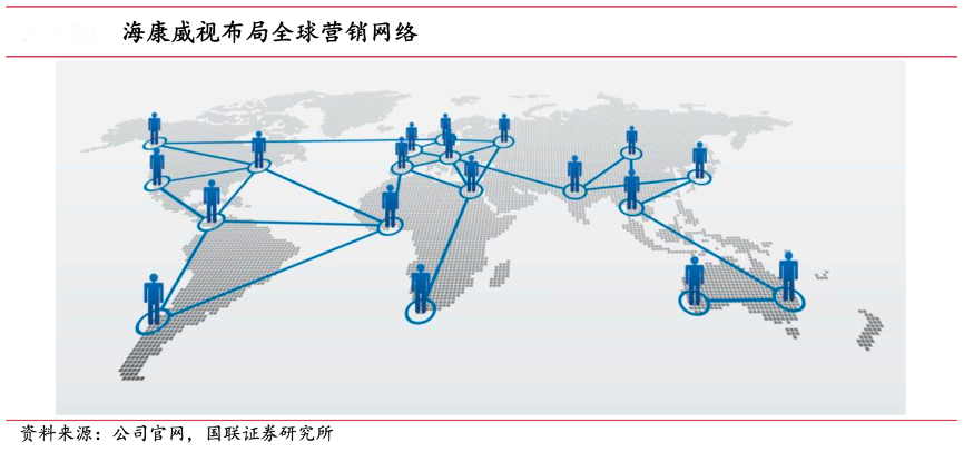 經典案例:根據公司官網、國聯證券研究所等綜合資訊表明,海康威視公司布局 2 大營銷體系,服務全球發展戰略,包括國內業務營銷體系和國際業務營銷體系,努力拓展海外市場空間。截至 2022 年末,中國大陸設有 32 家省級業務中心、300多個城市分公司,在港澳臺地區及海外國家/地區設立了 72 家分支機構,為全球 150 多個國家和地區的客戶提供產品和服務。