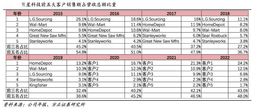 經典案例:根據公司年報、方正證券研究所等綜合資訊表明,目前,巨星科技公司已成為美國 HOME DEPOT、美國 WALMART、美國 LOWES、歐洲 Kingfisher、加拿大 CTC 等多家大型連鎖超市最大的工具和儲物柜(Tools and Storage)供應商之一,并不斷拓展新的產品品類。目前在全球范圍內,有 20000 家以上的大型五金、建材、汽配等連鎖超市同時銷售公司的各類產品,保證了公司各類創新型產品的高速發展。