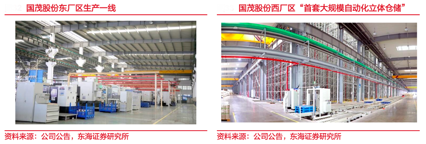 經典案例:根據公司公告、東海證券研究所等綜合資訊表明,國茂股份公司倡導精益生產,柔性制造,產品競爭力強。將模塊化技 術充分應用到產品端,打造全行業領先的產品庫,型號累計超 15 萬種,可以根據客戶需求進行個性化定制。利用數字化賦能,將自動化滲透到生產各個環節,實現生產透明,全程可追溯,產品質量穩定效率優。