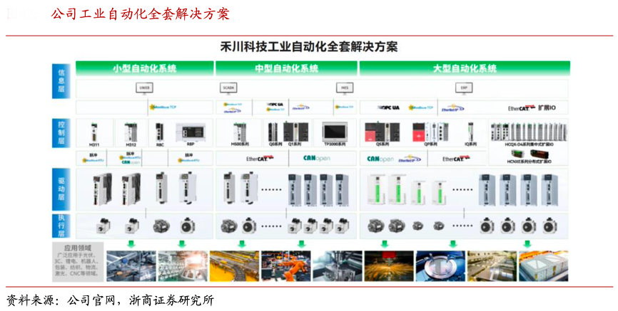 經典案例:根據公司官網、浙商證券研究所等綜合資訊表明,禾川科技公司及時深入了解客戶工藝需求,為客戶量身定制個性化解決方案。公司已形成控制技術、運動控制、工業傳遞和視覺傳感四大產品類型,未來將加強在工控芯片、產業機器、數字化工廠等領域的布局,實現產品矩陣對工業自動化領域“控制+驅動+執行傳感+機電一體化”的全覆蓋。