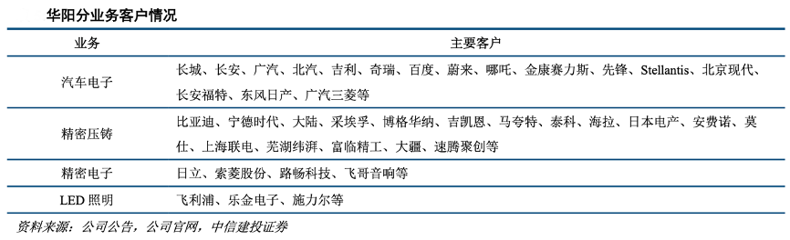 經(jīng)典案例:根據(jù)公司公告、公司官網(wǎng)、中信建投證券等綜合資訊表明,華陽公司產(chǎn)品覆蓋汽車關(guān)鍵零部件(含新能源 三電系統(tǒng)關(guān)鍵部件)、精密 3C 電子部件及工業(yè)控制部件等產(chǎn)品,作為 Tier2 向法雷奧、蒂森克虜伯、大陸等外資 Tier 1 龍頭供貨,近年來又成功進入比亞迪等主機廠供應(yīng)鏈,產(chǎn)品從動力系統(tǒng)、制動系統(tǒng)、轉(zhuǎn)向系統(tǒng)等關(guān)鍵零部件延伸至新能源三電系統(tǒng)、熱管理系統(tǒng)和汽車電子零部件(HUD、激光雷達、毫米波雷達)等。