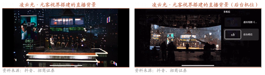 經典案例:根據抖音、招商證券等綜合資訊表明,2024 年 1 月 16 日,《柒兩人生》導演謝多盛、制片人梁子康、主演慧慧周等主創團隊空降北京元客方舟 MAC 元宇宙演藝制播科技中心,用 XR 虛擬制作技術 再現劇中經典場景,用虛擬直播方式講述幕后拍攝的精彩花絮。