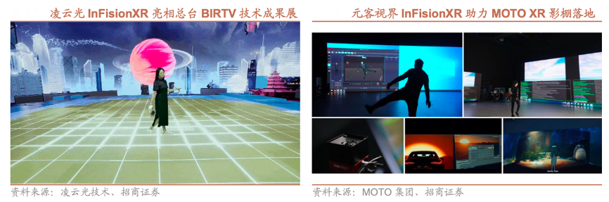 經(jīng)典案例:根據(jù)凌云光技術(shù)、MOTO集團、招商證券等綜合資訊表明,InFision XR 是基于總臺 4K 超高清電視技術(shù)標(biāo)準(zhǔn)和 XR 虛實融合制作標(biāo)準(zhǔn)推出的“全國產(chǎn)超高清 XR 虛實融合制作系統(tǒng)”。在第三十屆北京國際廣播電影電視展覽會上,總臺聯(lián)合凌云光·元客視界將 VR 影像繪畫技術(shù)與 XR 虛實融合制作系統(tǒng)巧妙結(jié)合,該系統(tǒng) 實現(xiàn)了 VR 設(shè)備實時渲染、攝像機實景拍攝跟蹤到大屏端合成效果呈現(xiàn),打通了 廣電級 VR 實時繪制的直播流程。