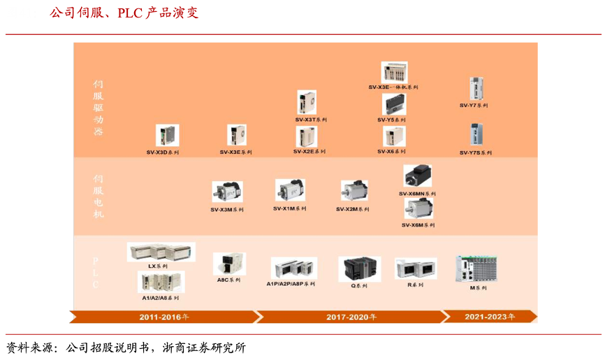 經(jīng)典案例:根據(jù)公司招股說明書、浙商證券研究所等綜合資訊表明,禾川科技公司主力產(chǎn)品每年穩(wěn)步更新迭代,多產(chǎn)品系列滿足不同控制需求。公司目前已經(jīng)形成 Y 系列高階伺服、X5 系列進(jìn)階型伺服、X3E 通用型伺服、X2 E 簡易型伺服、J 系列一體機(jī)等伺服驅(qū)動器,覆蓋客戶差異化需求。