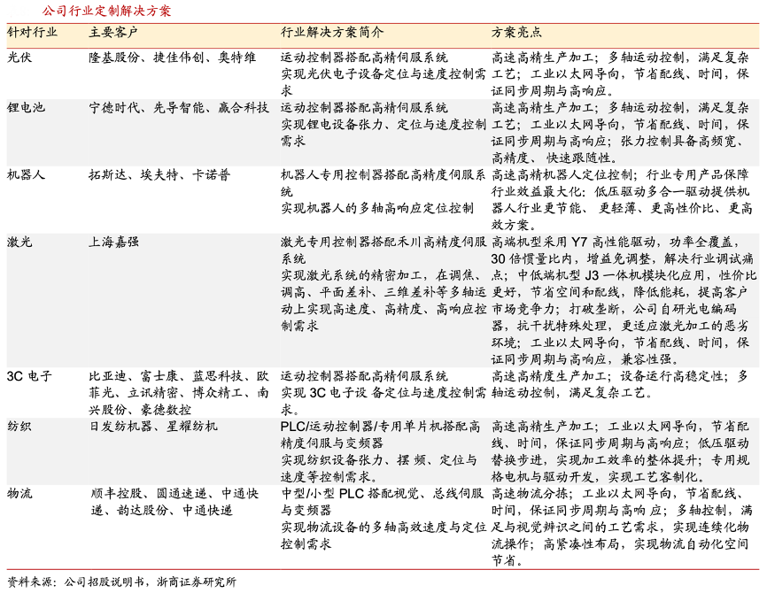 經(jīng)典案例:根據(jù)公司招股說明書、浙商證券研究所等綜合資訊表明,禾川科技發(fā)揮產(chǎn)品組合優(yōu)勢,打造多場景解決方案。其充分發(fā)揮控制、驅(qū)動、傳感、 機(jī)電一 體化等產(chǎn)品組合優(yōu)勢,在光伏、鋰電、機(jī)器人、激光等多個行業(yè)擁有深入的個性化解決方案。