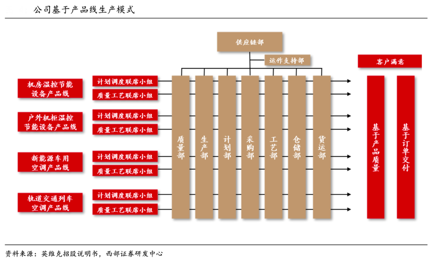 經(jīng)典案例:根據(jù)英維克招股說明書、西部證券研發(fā)中心等綜合資訊表明,英維克扎根于溫控節(jié)能設(shè)備領(lǐng)域,利用統(tǒng)一技術(shù)和供應(yīng)鏈平臺,多細分領(lǐng)域業(yè)務(wù)布局,并基于產(chǎn)品線組織生產(chǎn)。通過共享研發(fā)、采購、服務(wù)等環(huán)節(jié),提升產(chǎn)品研發(fā)速度,實現(xiàn)規(guī)模化采購,以此“快速推出優(yōu)質(zhì)產(chǎn)品”,力爭每個細分市場成為龍頭或主流。