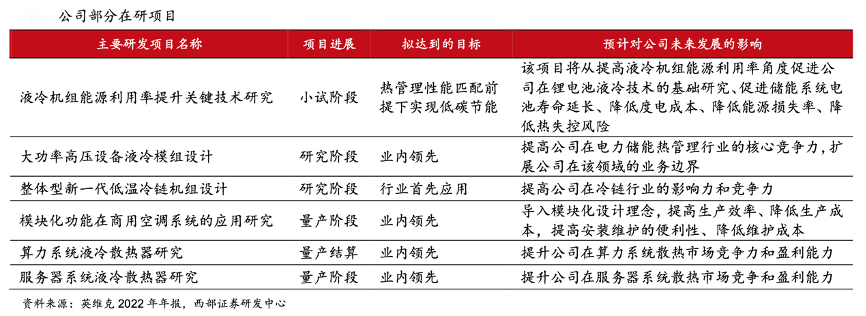 經(jīng)典案例:根據(jù)英維克2022年年報、西部證券研發(fā)中心等綜合資訊表明,在研發(fā)方面,英維克公司深圳和北京均成立了技術(shù)研究院,專注負責(zé)產(chǎn)品、技術(shù)研發(fā)。深圳研究院更注重產(chǎn)品線研究,緊扣公司業(yè)務(wù),分別展開了先進熱管理等五個專業(yè)方向的技術(shù)研究工作,與公司產(chǎn)品線互動。北京研究院則是公司技術(shù)研究院的前沿,利用本地充裕科研人才和配套資源,積極參與業(yè)務(wù)相關(guān)先進技術(shù)的研發(fā)。