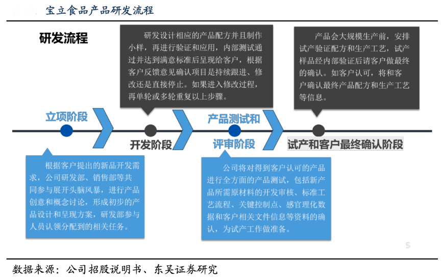 經典案例:根據公司招股說明書、東吳證券研究所等綜合資訊表明,寶立食品有著一套十分完善的產 品研發(fā)流程,從立項、開發(fā)、產品測試和評審到試產和客戶最終確認,一系列流程均由 客戶參與,保障著 B 端客戶的權益與需求。在研發(fā)能力方面,公司在近兩年也獲得了十 余項產品研發(fā)獎項,可見其研發(fā)能力在行業(yè)中有著十足的競爭力。