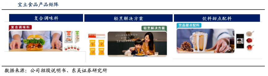 經典案例:根據公司招股說明書、東吳證券研究所等綜合資訊表明,寶立食品公司產品以粉體、醬汁類復調為主,擴展輕烹業務與飲品甜點配料,產品線不斷豐 富。公司深耕復合調味料領域多年,將西方主流快餐經典口味引入中國市場,并持續不 斷地研發新式西餐口味、迎合中國大眾消費市場向市場推出新產品。