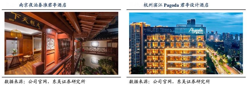 經典案例:根據公司官網、東吳證券研究所等綜合資訊表明,君亭酒店與南京夫子廟文化旅游集團聯手打造的夜泊秦淮系列,依托秦淮河文化,探索“城人事美”,對當地建筑歷史文化、人文美學再創作,由酒店服務提供者轉變為文化故事講述者,以文化元素強勢賦能品牌競爭力。