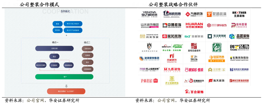 經典案例:根據公司官網、華安證券研究所等綜合資訊表明,整裝賽道崛起,成為定制與裝 企融合發展的有利條件,2023年志邦家居公司整裝渠道合作業務增速達 34.50%。其相繼發布“超級服務邦”、“全空間高 效整裝”、“十大超能力”等多維賦能體系,與多家優秀裝企達成合作,攜手共創共建整裝新生態。