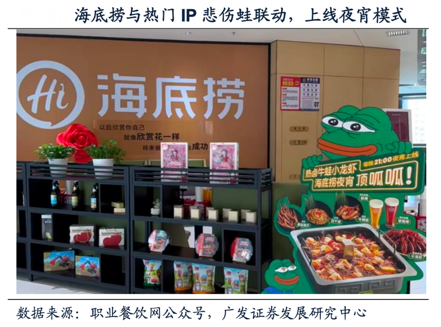 經(jīng)典案例:根據(jù)職業(yè)餐飲網(wǎng)公眾號(hào)、廣發(fā)證券發(fā)展研究中心等綜合資訊表明,2023年暑期海底撈近1000家門店 每晚上線夜宵,增加小龍蝦、鹵味、牛蛙鍋、精釀啤酒等產(chǎn)品,聯(lián)動(dòng)熱門IP悲傷蛙,每晚定時(shí)發(fā)起猜拳活動(dòng)。
