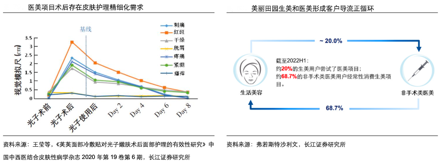 經(jīng)典案例:根據(jù)王瑩等著作、弗若斯特沙利文、長(zhǎng)江證券研究所等綜合資訊表明,由于醫(yī)美機(jī)構(gòu)以醫(yī)護(hù)人員為主,難以兼顧術(shù)后護(hù)理,而醫(yī)美術(shù)后的皮膚通常更為敏感脆弱,需加大補(bǔ)水力度或采取消炎措施,加之日常在家使用的化妝品溫和性不足而易于刺激皮膚。因此,秀可兒用戶(hù)有較大動(dòng)力回流至生美門(mén)店進(jìn)行術(shù)后護(hù)理,據(jù)美麗田園統(tǒng)計(jì),約 68.7%的秀可兒用戶(hù)回流至生美門(mén)店,形成正向循環(huán),客戶(hù)粘性得以增強(qiáng)。