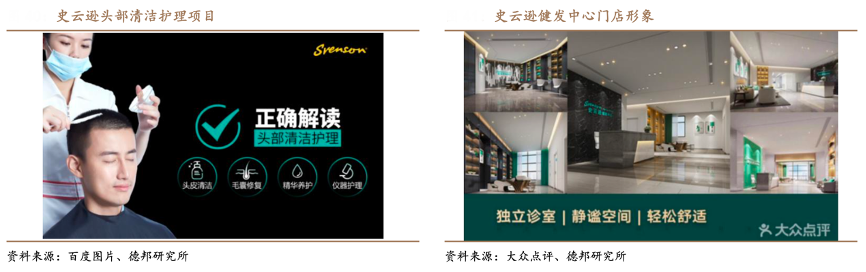 經(jīng)典案例:根據(jù)百度圖片、大眾點(diǎn)評(píng)、德邦研究所等綜合資訊表明,史云遜依賴于雍禾醫(yī)療積攢的會(huì)員體系進(jìn)行發(fā)展,前期以給植發(fā)患者做增值服務(wù)為主,以店中店形式進(jìn)行推廣,隨著養(yǎng)發(fā)人群擴(kuò)充、養(yǎng)發(fā)意識(shí)提升,后續(xù)史云遜將以獨(dú)立店模式進(jìn)行擴(kuò)展,由點(diǎn)及面形成一個(gè)城市“1-2 家植發(fā)機(jī)構(gòu)+N 家史云遜”模式。