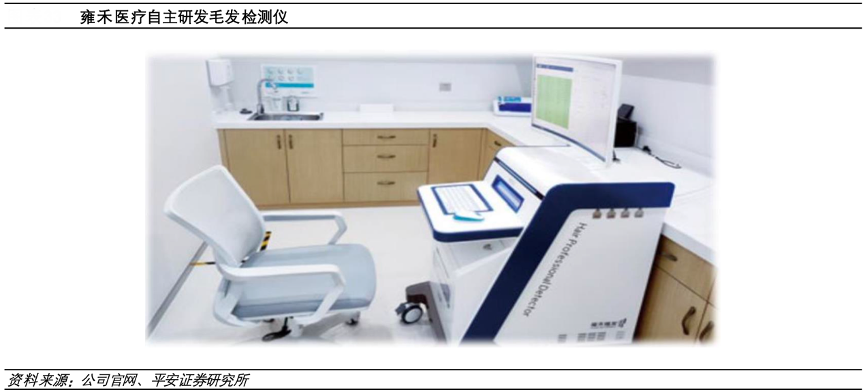 經(jīng)典案例:根據(jù)公司官網(wǎng)、平安證券研究所等綜合資訊表明,雍禾醫(yī)療公司自主研發(fā)了毛發(fā)檢測儀,可以精確測量毛發(fā)的長度和直徑,準(zhǔn)確分析脫發(fā)程度,并 協(xié)助醫(yī)生制定診斷治療方案,通過智能圖像識(shí)別及大數(shù)據(jù)演算以提升患者就診體驗(yàn)。