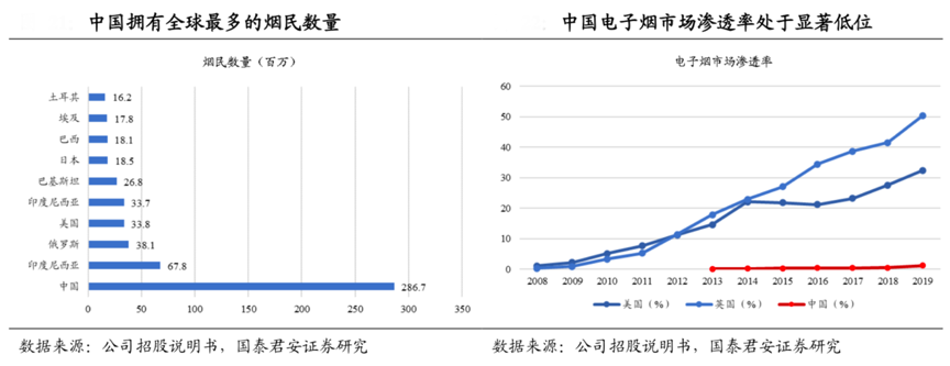 經典案例:根據公司招股說明書、國泰君安證券研究等綜合資訊表明,近年來美國、英國、中國的電子煙使用者滲透率均保持持續增長,分別從 2014 年的 22.1%/22.9%/0.2%增長至 2019 年的 32.4%/50.4%/1.2%,中國煙民數量眾多而 電子煙使用比例較小,中國的電子煙市場具有極大的發展潛力。隨著國內煙民健康意識的提高,煙草市場對于高品質、低焦油煙草制品的需求將愈發旺盛,帶動電子煙市場的迅速成熟。
