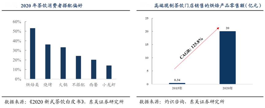 經(jīng)典案例:根據(jù)《2020新式茶飲白皮書(shū)》、灼識(shí)咨詢、東吳證券研究所等綜合資訊表明,奈雪率先提出現(xiàn)制茶飲搭配烘焙產(chǎn)品的概念,推進(jìn)“茶飲+烘焙”優(yōu)勢(shì)互補(bǔ),以相對(duì)高頻的茶飲帶動(dòng)軟歐包的購(gòu)買頻次,交叉銷售又提升了客單價(jià),并強(qiáng)化了“下午茶” 和“聚會(huì)”的消費(fèi)場(chǎng)景。根據(jù)灼識(shí)咨詢預(yù)計(jì),截至 2020 年前三季度,按通過(guò)高端現(xiàn)制茶飲門店銷售的烘焙產(chǎn)品零售額計(jì),奈雪市場(chǎng)份額在現(xiàn)制茶飲品牌中排名第一,達(dá)到 21.7%。