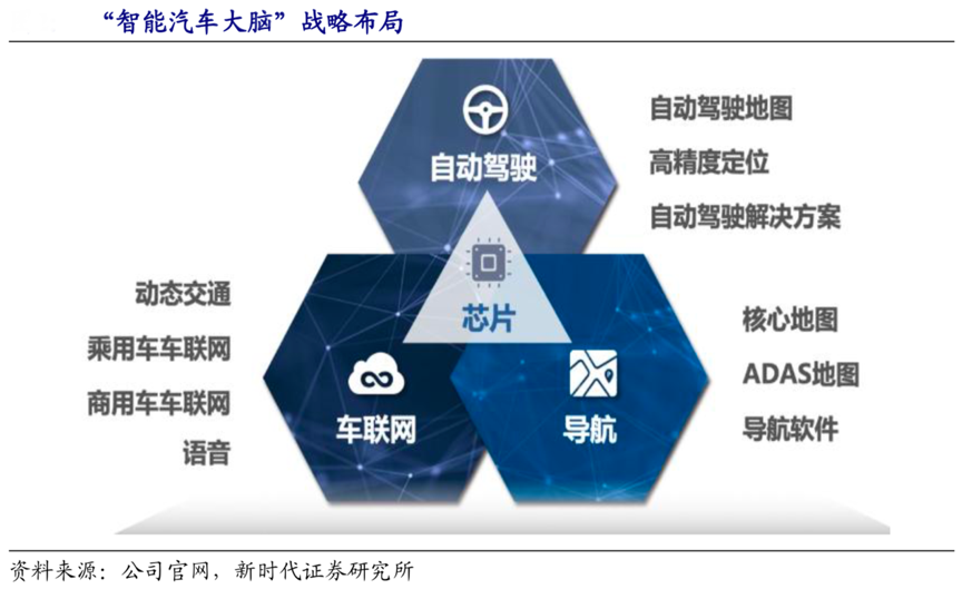 經典案例:根據公司官網、新時代證券研究所等綜合資訊表明,四維圖新公司以數據、算法 和算力為核心,加大內外部資源整合和一站式云平臺建設,加速推進高精度地圖、 高精度定位、自動駕駛、汽車電子芯片、位臵大數據、車聯網等新業務的商業化進 程,通過資本協同、戰略合作、聯合驗證、參與產業研究及行業標準制定等多種方 式,拓展產業生態,創新商業模式,積極打造面向自動駕駛時代的“數據+云+AI+ 芯片+軟硬一體化”綜合解決方案,積極構建公司在自動駕駛領域的未來的競爭優 勢和行業頭部地位。