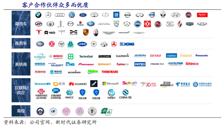 經典案例:根據公司官網、新時代證券研究所等綜合資訊表明,四維圖新公司自 2015 年以來與滴滴保持深度且緊密的合作關系,與騰訊、華為、Here、清華大學、 武漢大學、北京航空航天大學等國內外領先企業及科研院校建立深度的合作關系,共同推進技術創新或產品商業化落地,在高精度地圖、高精度定位、自動駕駛整體解決方案等業務領域的競爭優勢逐漸顯現。