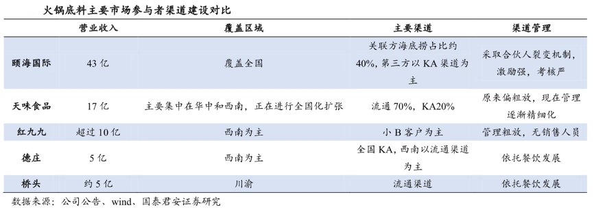 經典案例:根據公司公告、wind、國泰君安證券研究等綜合資訊表明,憑借著增量經銷商不斷提供的終端資源,頤海國際/天味的銷售網絡逐漸壯大,中小企業的生存空間受到持續擠壓。從數據上看,復合調味品優勢企業天味食品經銷商由 17 年的 769 家持續增長至 20 年上 半年的 2051 家,頤海國際經銷商由 17 年的 814 家增長至 19 年的 2400 家。
