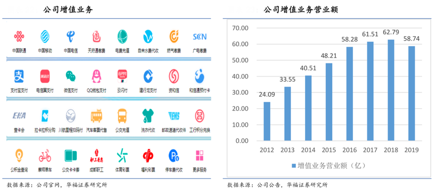 經典案例:根據公司官網、公司公告、華福證券研究所等綜合資訊表明,紅旗連鎖公司其增值業務范圍廣泛,主要涵蓋代收費服務、快遞代收代派、充值、信用卡還款等項目。其多數增值服務執行傭金制度,且不存在額外的成本,所以所獲傭金收入相當于直接計入利潤。2012 年至 2019 年,紅旗連鎖增值業務營業額由 24.09 億元提高至 58.74 億元,CAGR 為 14%。