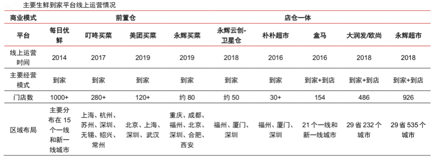 根據草根調研、36kr、聯商網、商業觀察網、Questmobile、中信證券研究部預測等綜合資訊表明,國內生鮮到家模式大多創始不久,區域布局多在一二線城市,生鮮占比多在50%以上,線上客單價多在60元以下,線上成為其主要戰場,這些鮮明的特征告訴我們,“生鮮品類結構”構建是生鮮到家模式中關鍵的一環,強有力的生鮮商品是優質流量入口,更是生鮮到家模式毛利“調節器”。