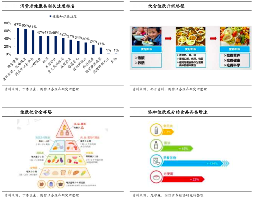 國內食品消費經過多年,消費升級使大家對食品更關注其品質化、價值化,國內消費主力人群集中在80后邊、90后人群,其對自身生活品質的要求促生了大量的“健康食品消費”,根據丁香醫生、國信證券經濟研究所等綜合資訊表明,80后、90后對骨質關節、睡眠、三高等健康問題尤其關心,更愿意為此支付費用。