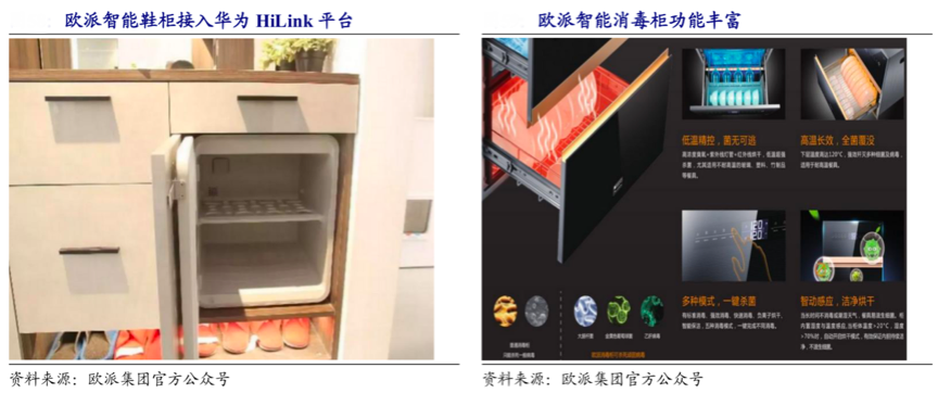 經典案例:根據公司公告、開源證券研究所等綜合資訊表明,2019 年 8 月,歐派與華為達成戰略簽約,歐派家居將全面對接華為 HiLink 平臺,推 進在家裝領域的智能化進程。在線下渠道,歐派將主推華為 HiLink 生態產品及全屋 智能家裝方案,并聯合探索線下渠道營銷全屋智能方案套包。