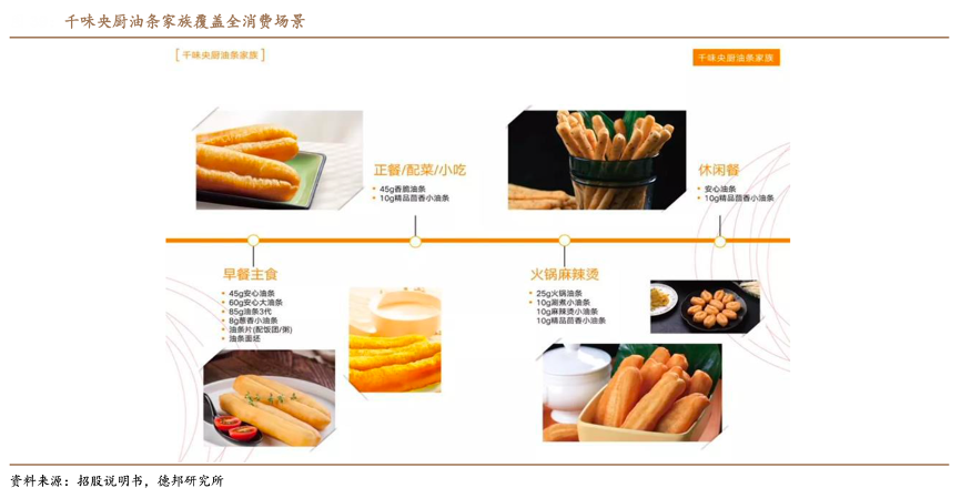 經(jīng)典案例:根據(jù)招股說明書、德邦研究所等綜合資訊表明,千味央廚公司依托現(xiàn)有產(chǎn)品進(jìn) 行場景化的深入研究,研發(fā)出適應(yīng)不同消費(fèi)場景的系列產(chǎn)品。以油條為例,公司從 2012 年開始進(jìn)行油條細(xì)分場景下的市場研究,細(xì)分出火鍋、快餐、自助餐、宴席、早餐、外賣六大場景,并針對性推出茴香小油條、麻辣燙小油條、火鍋涮煮油條、外賣專用油條等多款創(chuàng)新性產(chǎn)品。