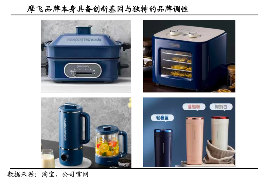 經(jīng)典案例:根據(jù)淘寶、公司官網(wǎng)、國(guó)泰君安證券研究等綜合資訊表明,摩飛品牌是由 Donal Morphy 和 Charles Richards 于 1936 年在英國(guó)創(chuàng)立。其專業(yè)的英國(guó)工程師隊(duì)伍使其具備獨(dú)特設(shè)計(jì)和高端品質(zhì),創(chuàng)新推出第一臺(tái)裝有溫度指示燈的電熨斗使得熨燙更加的精確方便、生產(chǎn)出英國(guó)第一臺(tái)全自動(dòng)多士爐,節(jié)約了人們制作早餐的時(shí)間等產(chǎn)品。