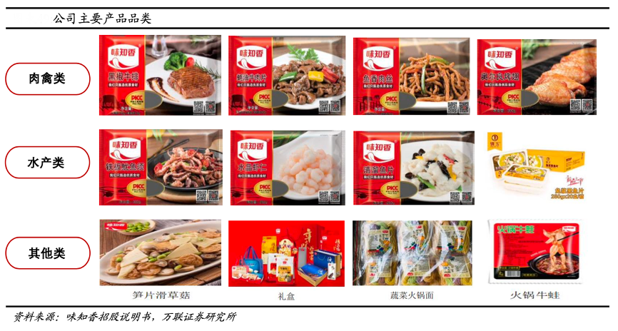 經典案例:根據味知香招股說明書、萬聯證券研究所等綜合資訊表明,味知香現有8大產品線,包含牛肉類、羊肉類、豬肉類、家禽類、水產類、湯煲類、素菜類、火鍋類;產品品類超過 300 種,覆蓋肉禽類、水產類及其他類。此外,公司建立了柔性化生產線,能夠根據下游需求靈活地生產多種產品。