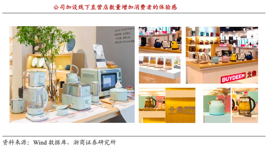 經典案例:根據wind數據庫、浙商證券研究所等綜合資訊表明,線下方面北鼎不僅入駐多個大型超市,還開設了其自己的線下體驗店,并迅速在全國蔓延覆蓋。同時北鼎邀請明星在其線下直營體驗店與消費者互動,增加品牌知名度的 同時進一步宣傳其生態圈購物的理念,使消費者更好地理解并接受北鼎的高效、健康、系統化的概念。