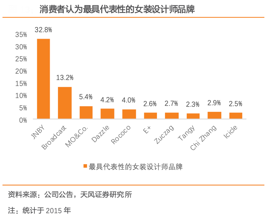 經典案例:根據公司公告、天風證券研究所等綜合資訊表明,中國設計師品牌時裝市場相對分散,2015 年以零售額 計算十大市場參與者占市場份額的 43.2%。集團于 2015 年在設計師品牌時裝公司中取得最 高的零售額及 9.6%的市場份額,占中國總體服裝市場份額 0.2%,是 2015 年中國最大的設計師品牌時裝公司。