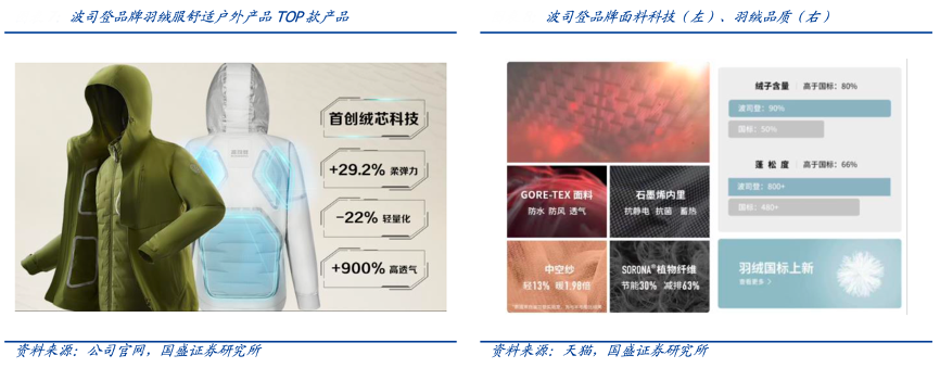 經(jīng)典案例:根據(jù)公司官網(wǎng)、天貓、國盛證券研究所等綜合資訊表明,截至 2023/3/31,波司登公司累計(jì)全部專利達(dá) 606 項(xiàng),為專業(yè)性能與時(shí)尚流行兼?zhèn)涞目?式研發(fā)提供堅(jiān)實(shí)基礎(chǔ)。在堅(jiān)實(shí)技術(shù)積淀的基礎(chǔ)上,公司堅(jiān)持迭代主打?qū)I(yè)性能的“登峰”系列,在保暖性方面占領(lǐng)消費(fèi)者心智、強(qiáng)化品牌專業(yè)屬性。
