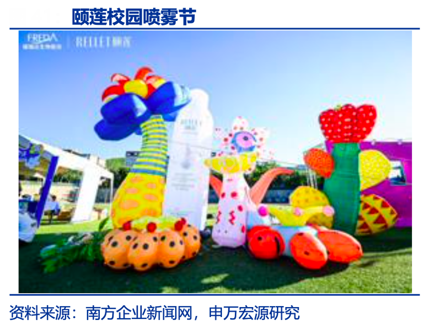 經典案例:根據南方企業新聞網、申萬宏源研究等綜合資訊表明,頤蓮品牌更加關注建立與 年輕消費者之間的長期互動,結合頤蓮補水噴霧特點打造校園音樂噴霧節,讓年輕消費者 直接體悟到頤蓮帶來的清爽。