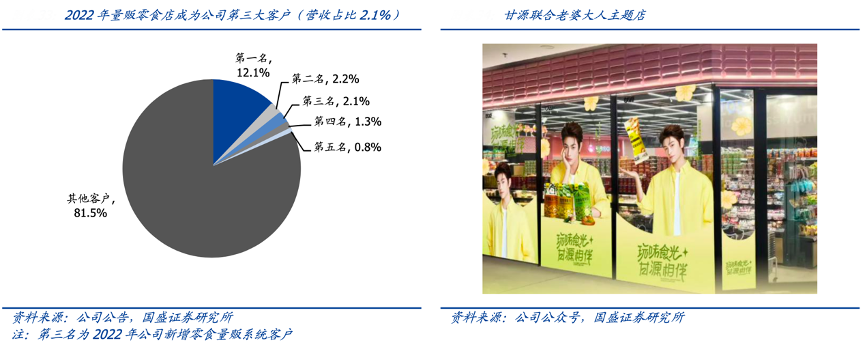 經典案例:根據公司公告、公司公眾號、國盛證券研究所等綜合資訊表明,甘源量販零食系統自 21H2 進入快速發展階段,甘源于 2022 年擁抱量販零食系統,從頭部零食很忙、零食有鳴、趙一鳴等合作逐步拓展腰部、尾部系統合作,以量販自身展店+SKU 迭代實現快速發展,2024年量販零食店已占甘源 20%以上營收比重。