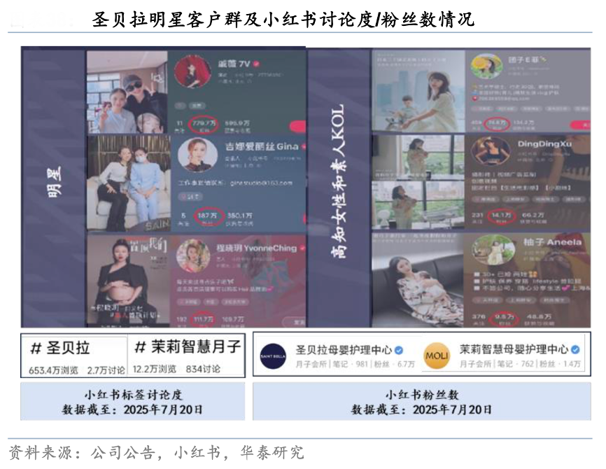 經典案例:根據公司公告、小紅書、華泰研究等綜合資訊表明,圣貝拉錨定高消費力客群心智,品牌力逐步轉化為身份符號,進一步強化了市場地位。2023 年 12 月公司榮獲年度奢華家庭卓越生活獎(Robb Report Hong Kong)。吉娜、戚薇、李艾等女星曾打卡入住,全網明星客戶粉絲量 1 億+。