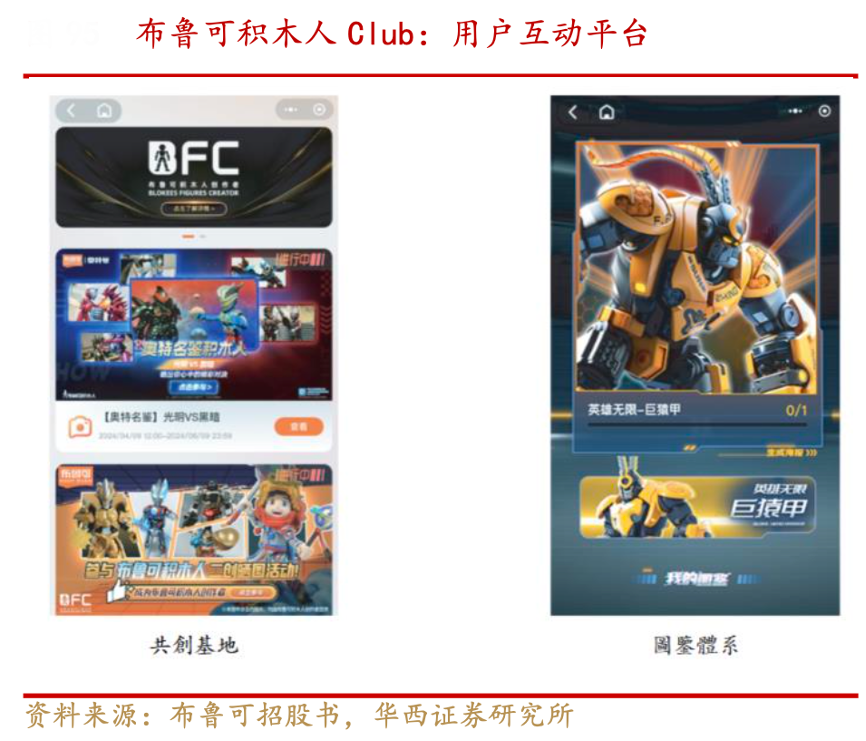 經(jīng)典案例:根據(jù)布魯可招股書、華西證券研究所等綜合資訊表明,布魯可建立 BFC(布魯可積木人創(chuàng)作者)社區(qū),鼓勵用戶二次創(chuàng)作(涂裝、場景改裝), 優(yōu)秀作品亮相紐約/紐倫堡國際玩具展。截至 2024 年 6 月,布魯可積木人 Club 上擁 有約 200 萬注冊會員。