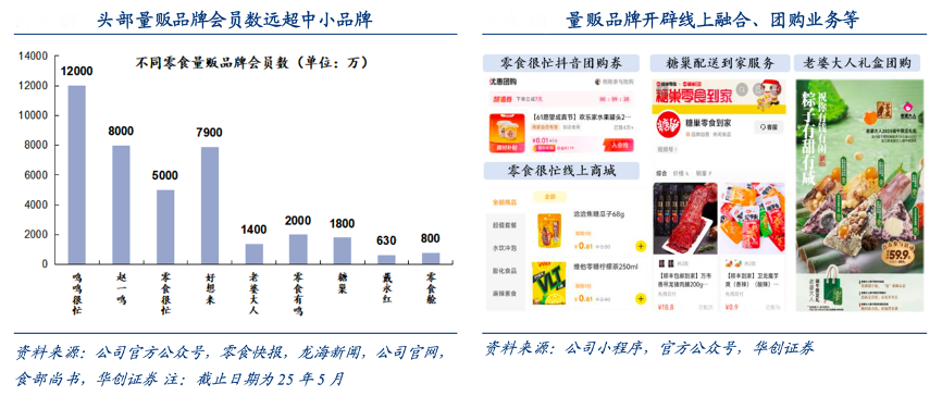 經(jīng)典案例:根據(jù)公司官方公眾號、華創(chuàng)證券等綜合資訊表明,2023 年左右零食很忙、好想來均開拓會員體系,配套以各類會員活動及福利,開拓客群并強化會員粘性,頭部企業(yè)會員數(shù)快速攀升,且鳴鳴很忙 1.2 億個、好想來 7900 萬個會員, 大幅領(lǐng)先中小品牌不足 2000 萬會員的水平。