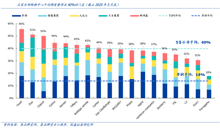 經(jīng)典案例:根據(jù)各品牌官網(wǎng)、各品牌官方小程序、公司官網(wǎng)、國盛證券研究所等綜合資訊表明,華潤萬象生活公司在重奢賽道已經(jīng)具備相當(dāng)大的規(guī)模基礎(chǔ)和品牌基礎(chǔ),是公司高端定位與差異化競爭實(shí)現(xiàn)的方式。截止 2024 年底,萬象城在營重奢購物中心 14 座,已經(jīng)形成一定的連鎖規(guī)模。