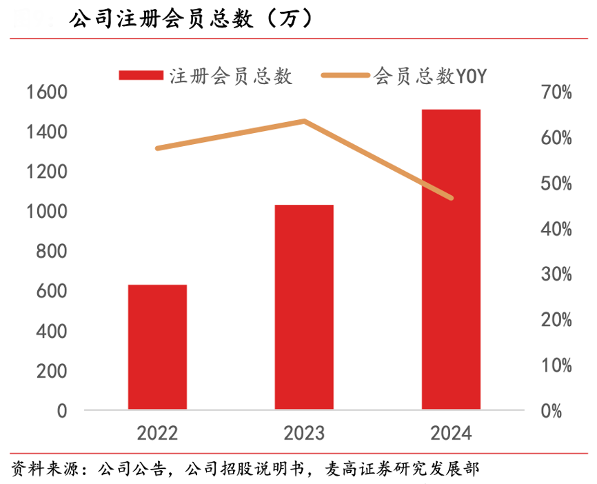 經(jīng)典案例:根據(jù)公司公告、公司招股說明書、麥高證券研究發(fā)展部等綜合資訊表明,2024年毛戈平公司注冊(cè)會(huì)員總數(shù)達(dá) 1510 萬(wàn)人,較 2023 年同比凈增 480 萬(wàn)人,增幅達(dá) 46.6%。